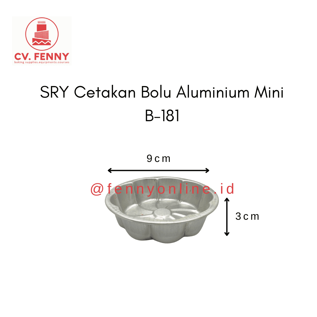 Cetakan bolu mini berbahan aluminium B-181 adalah alat yang digunakan untuk membentuk adonan kue bolu sebelum dimasak. Cetakan ini terbuat dari aluminium, yang merupakan bahan yang baik untuk konduktivitas panas, sehingga memastikan kue matang secara merata. Cetakan bolu berbahan aluminium biasanya tersedia dalam berbagai bentuk dan ukuran, sesuai dengan preferensi dan kebutuhan pembuat kue. Mereka mudah dibersihkan dan tahan lama, membuatnya menjadi pilihan populer di dapur rumah tangga dan industri kue.