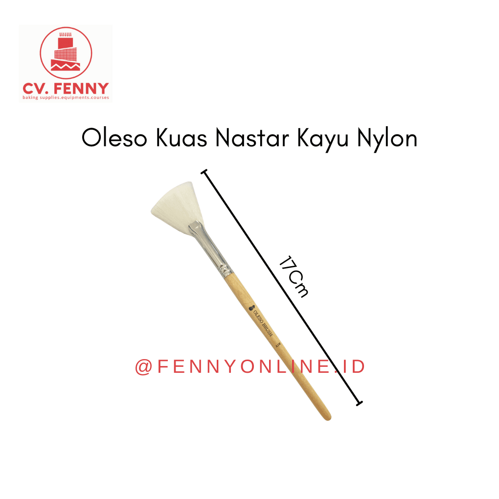 Oleso Kuas Nastar bulunya terbuat dari bahan nylon dan pangkalnya berbahan stainless. Kuas tidak mudah rontok, gagang kayu kuat, sangat cocok digunakan untuk mengoles permukaan kue kering sebelum dipanggang agar hasil kue kering lebih mengkilap dan cantik.