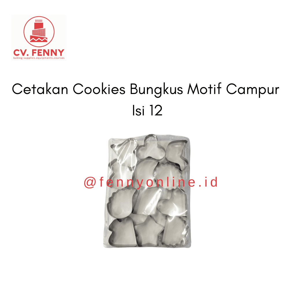Cetakan cookies bungkus bermotif adalah alat yang digunakan untuk membuat cookies dengan berbagai motif atau desain yang menarik. Cetakan cookies bungkus bermotif memungkinkan Anda untuk membuat cookies dengan tampilan yang menarik dan unik dengan cepat dan mudah. Ini adalah alat yang cocok digunakan untuk membuat hadiah, kue untuk acara khusus, atau untuk menambah variasi dalam kue-kue yang Anda buat di rumah.