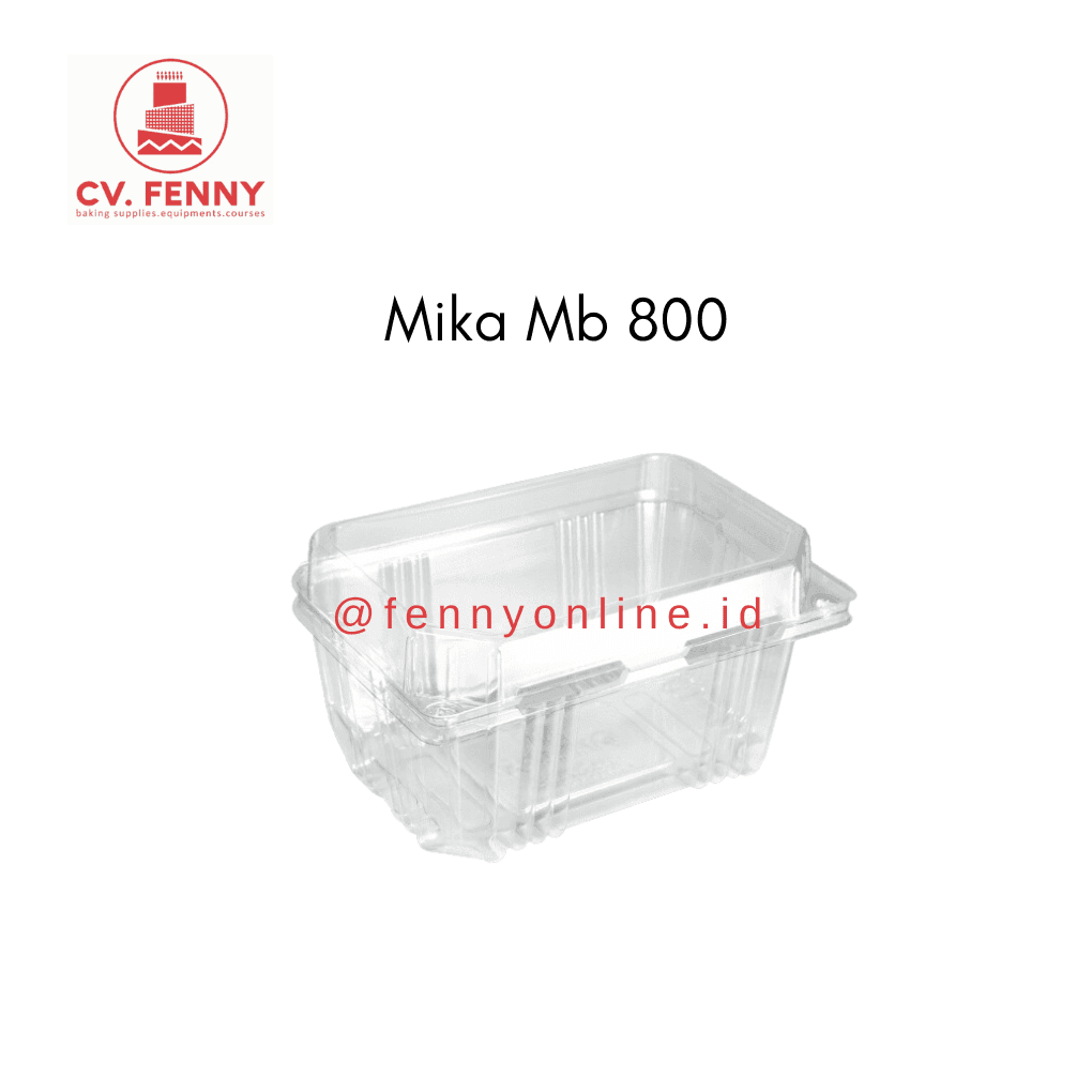 Mika kotak box MB - 800 bisa dipergunakan untuk : Makanan,buah-buahan dan sayuran. Spesfikasi Produk : - Warna dasar : Putih bening - Bahan sudah foodgrade sehingga aman untuk makanan,buah dan sayuran